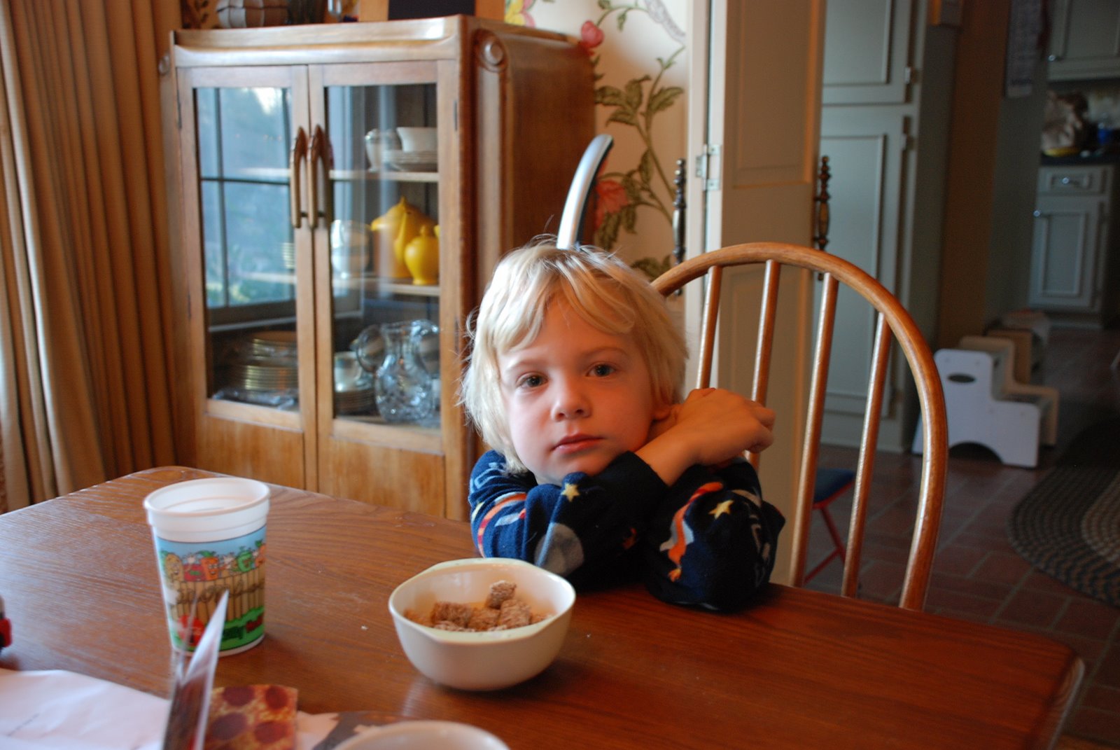 I'm still testing out my new camera and Ian is still eating cereal for breakfast. Put those two things together and you get a breakfast montage, including this image: