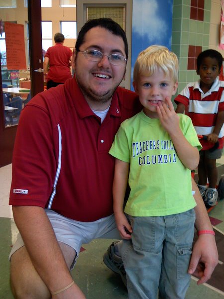As of 1 August 2007, he's no longer in the UA Children's Program's (as they prefer to call the UCCS) "multi-age" room 006 with Ms. Sara and Mr. Mike. Now he's next door, in the multi-age room 005 with Ms. Alison and Ms. Gale!